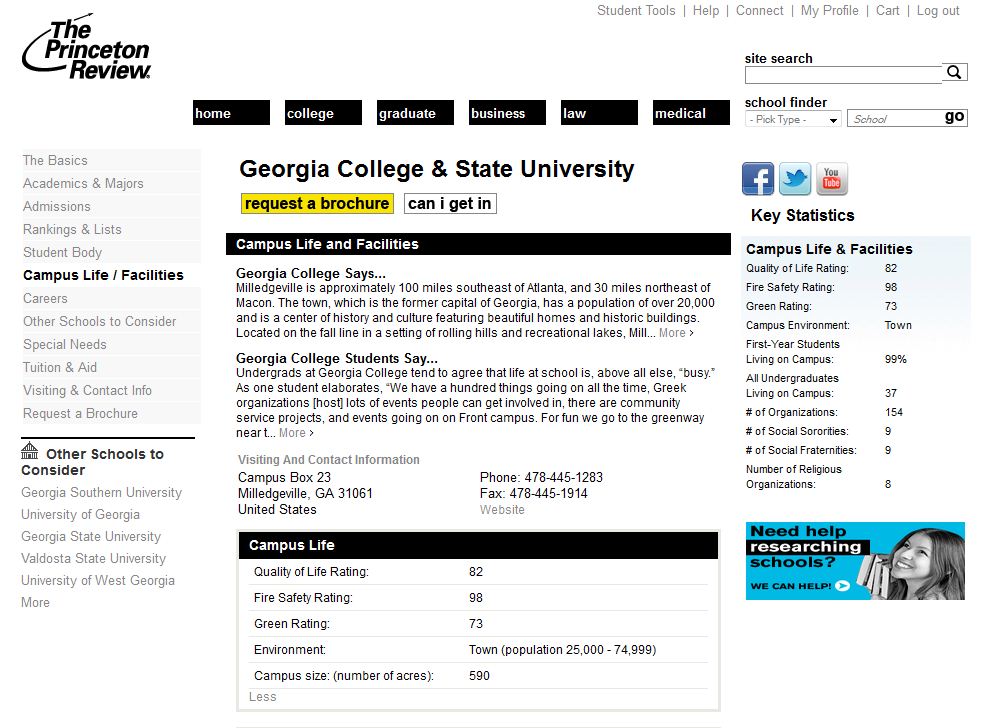 73/100. That’s the latest (2012) ranking for the Green category from the Princeton Review for Georgia College. It’s two points higher than 2011. That’s why we spent a considerable effort last week filling out the AASHE/STARS and Princeton Review reporting tools for sustainability. We have learned that we actually are doing much more than we’ve been given credit for! And we have learned that there are many more things we could be doing!!