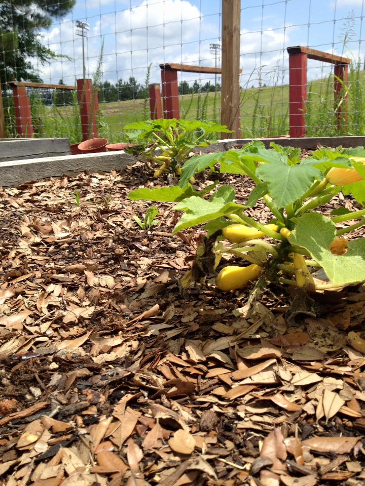 Located on West Campus, near the baseball field, Georgia College (GC) has a community garden, which is fittingly called the West Campus Garden and open for the enjoyment of GC faculty, staff, and students. The garden was made possible through the work of GC alum Lindsay Crowe and current GC student Andrew Wright. These two students submitted a proposal to the Sustainability Council for funding under the Sustainability Fee program. The proposal was approved during the spring of 2015; construction began in the summer of 2015; gardening began on August 29, 2015; and a ribbon cutting ceremony was held on October 5, 2016. The area is home to a 50 foot by 70 foot plot enclosed by 10 foot tall deer fencing, 20 raised beds each equipped with drip irrigation lines, a compost bin, bird houses, homemade stone signs, and fruit trees. In addition, a metal table is available for you to sit and enjoy the view.