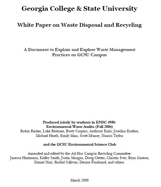2008 White Paper on Waste and Recycling at GCSU