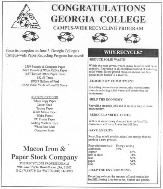 2004 – GCSU Wins award from Macon Paper for its paper recycling
