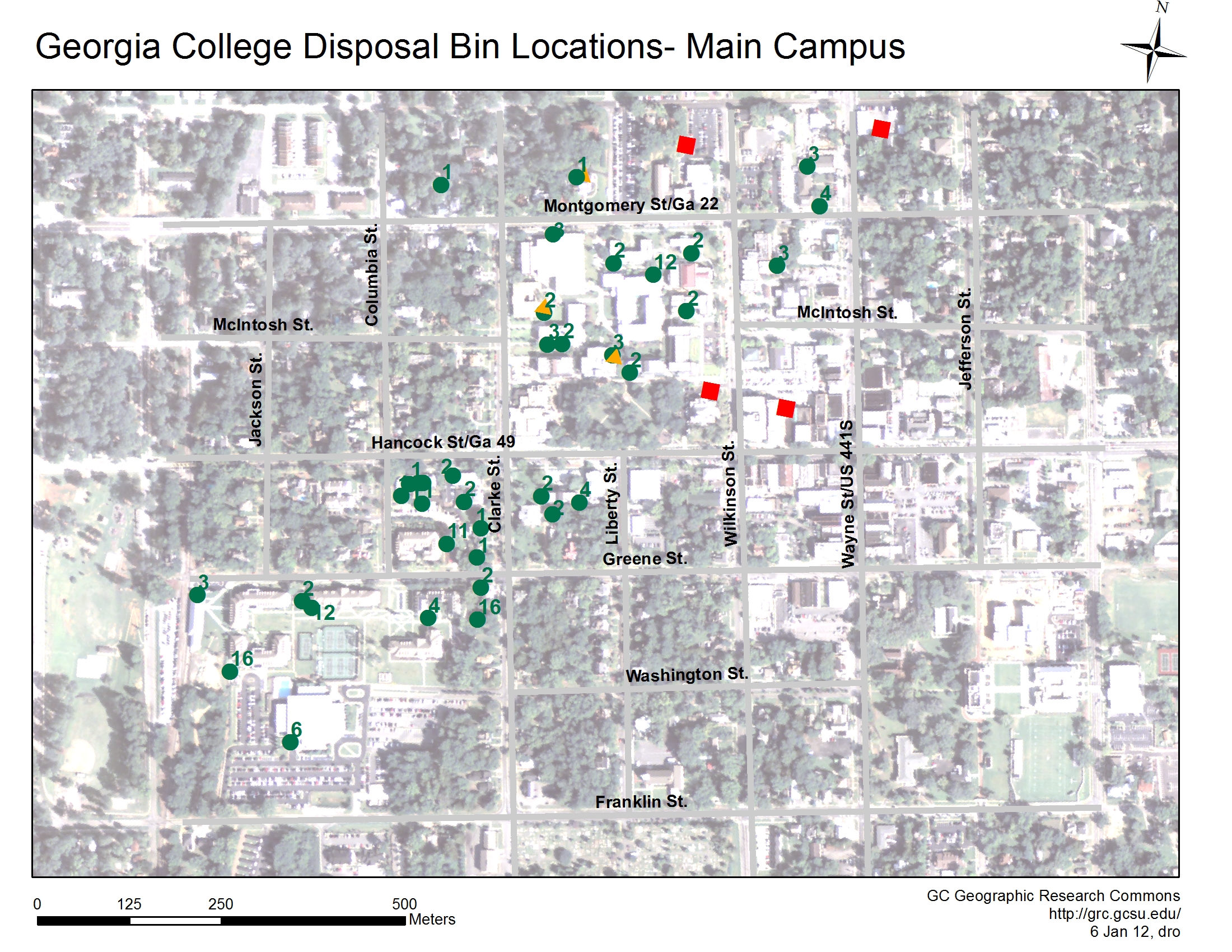 2012 – Locations of Recycling Bins on Main Campus
