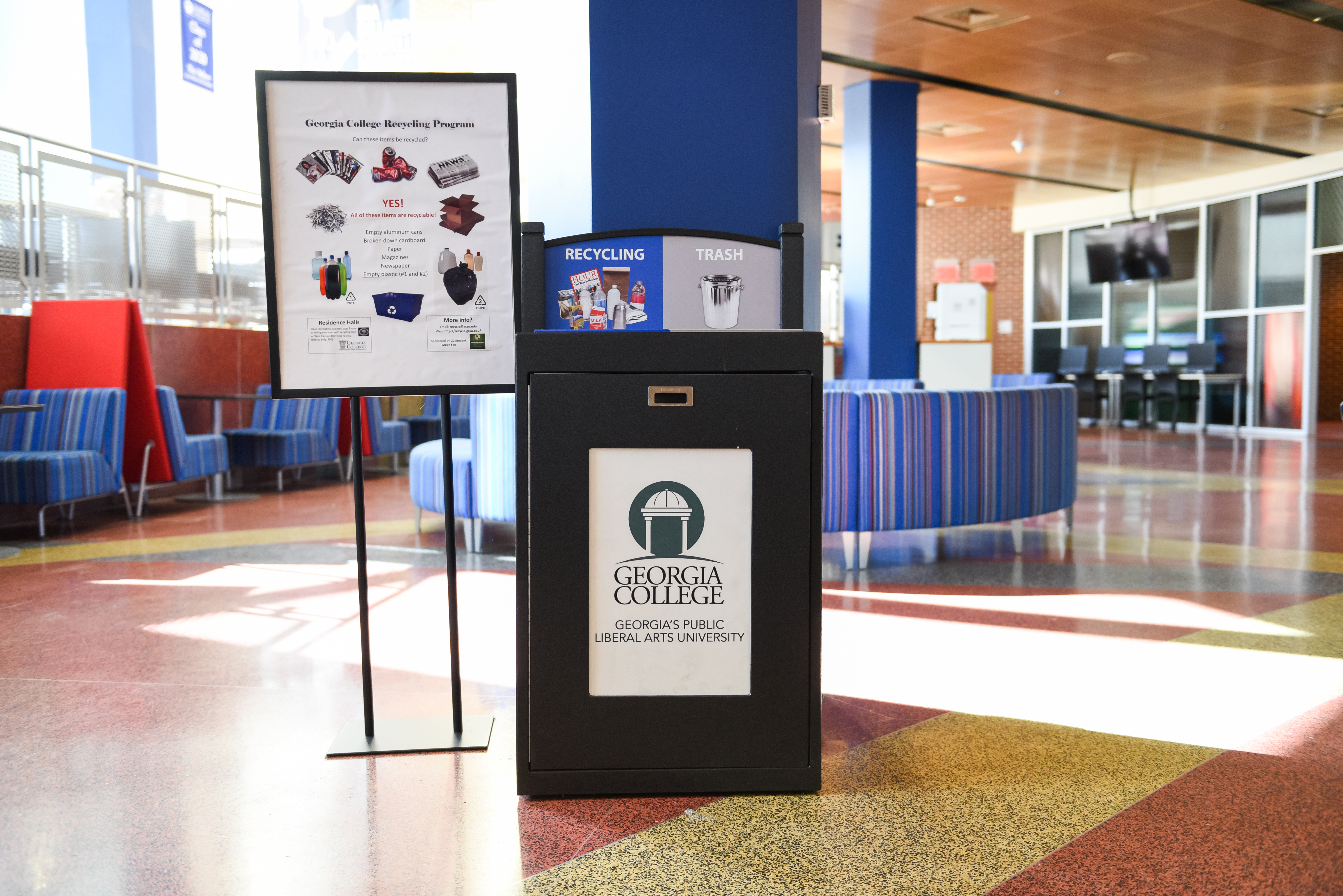 Blue Bin Recycling ProgramGeorgia College utilizes a single-stream method of collecting recyclables, which has been phased in over time. In 2010, the Student Government Association (SGA) initiated a Blue Bin Recycling Program that funded the purchase of 50 large 4-container blue bins and 60 single bins to distribute across campus. In 2012, another effort to improve recycling rates, considered Phase I, was approved. This funded the purchase of 300 7-gallon and 100 10.3-gallon blue recycling bins. The smaller bins were given to students living in the residence halls on main campus and to students living in the West Campus apartments. The larger bins were located in the hallways, lobby, and offices of the academic buildings, targeting high-traffic areas. Phase II of the program funded an additional 350 recycling bins, which were mostly distributed to faculty and staff. Phase III provided the campus with 300 7-gallon bins and 300 10-gallon bins, as well as promotional posters and decals. |